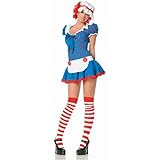 Here's the perfect sexy rag doll costume. The three-piece Rag Doll costume includes a white bonnet, a blue and red polka dot apron dress with built inpetticoat, and red and white striped stockings. Read more