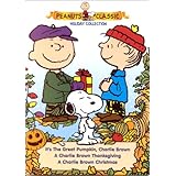Two of the all-time cartoon classics It's the Great Pumpkin, Charlie Brown (1966) and A Charlie Brown Christmas (a Peabody and Emmy winner from 1965) highlight this three-disc, six-episode set. Although the DVDs contain no extras (good grief!) and could have been combined on a single disc (drat!), the collection looks and sounds wonderful on DVD. The content is the same on the VHS and DVD sets, with two episodes per tape or disc. Accompanying Pumpkin is You're Not Elected, Charlie Brown, a cute spin on politics that has aged very well since its 1972 release. Christmas sports a lackluster sequel of sorts, It's Christmas Time Again, Charlie Brown (1992) that has Sally dwelling on getting (instead of giving), Charlie Brown facing a spending dilemma, and everyone suffering stage fright before the annual school play. A Charlie Brown Thanksgiving (1973) also won an Emmy but is not as well known as others; it also suffers from not having the original cast. Snoopy is foremost in helping to put on an impromptu feast (toast and popcorn) as the gang keeps forgetting the true meaning of the holiday. Also on the disc is a better Thanksgiving venue, The Mayflower Voyages (1988), part of the This is America, Charlie Brown series that breathed new life into the franchise. Mostly narrated by Linus, the show traces the Pilgrims' plight and doesn't talk down to youngsters on the hardships they faced. It's a treasure of a gift (for others or yourself), all nicely packaged. --Doug Thomas Read more
